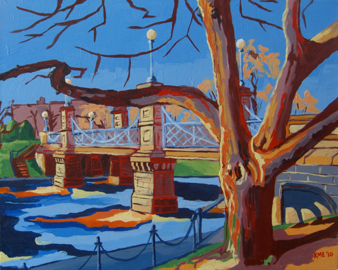 This weekend, I sat down with my original photo of inspiration to make a new Boston Garden In Color 1, version 2. Not only did I know that I would like the finished product and be happy to donate it, but I thought it would be fun to tackle the same scene, same setting (after all, same photo) and see what resulted. And let me tell you, I surprised myself at my own inclination to gravitate to the same way to paint something. I did not reference my old painting while painting this new work- though, it looks as if it were a direct replica. There are definite differences in color. If seen in person, you’d notice differences in texture as well....the second time around, I really slapped on the paint. But overall, it is clearly the same scene, the same artist, and the same gravitation to a specific brush stroke and color palette. I think this speaks to the way we, as artist, remember a painting. While I didn’t remember how I actually painted the first Boston Garden In Color, I believe my body knew exactly what to do and went about it the same way. Here are the two works side by side: